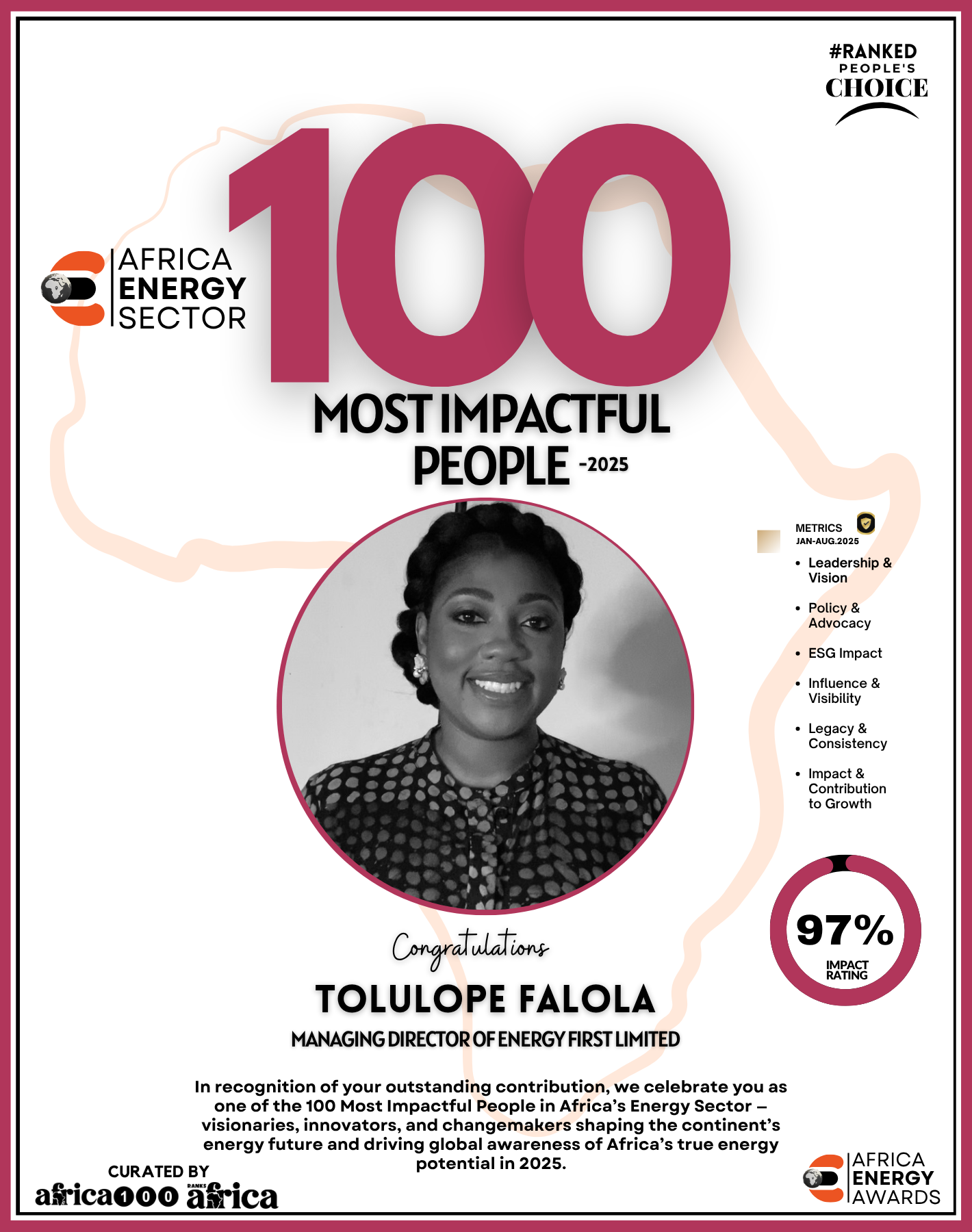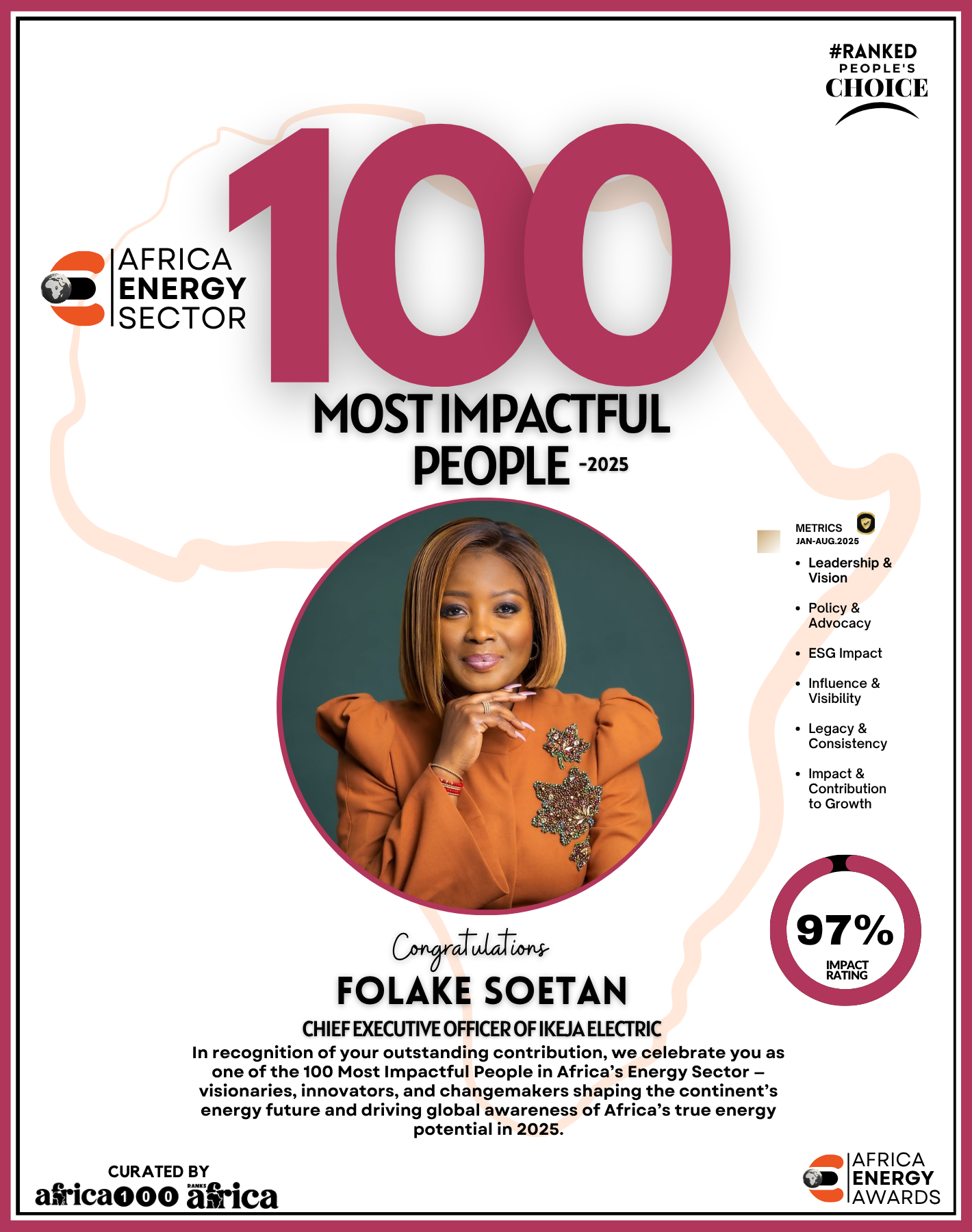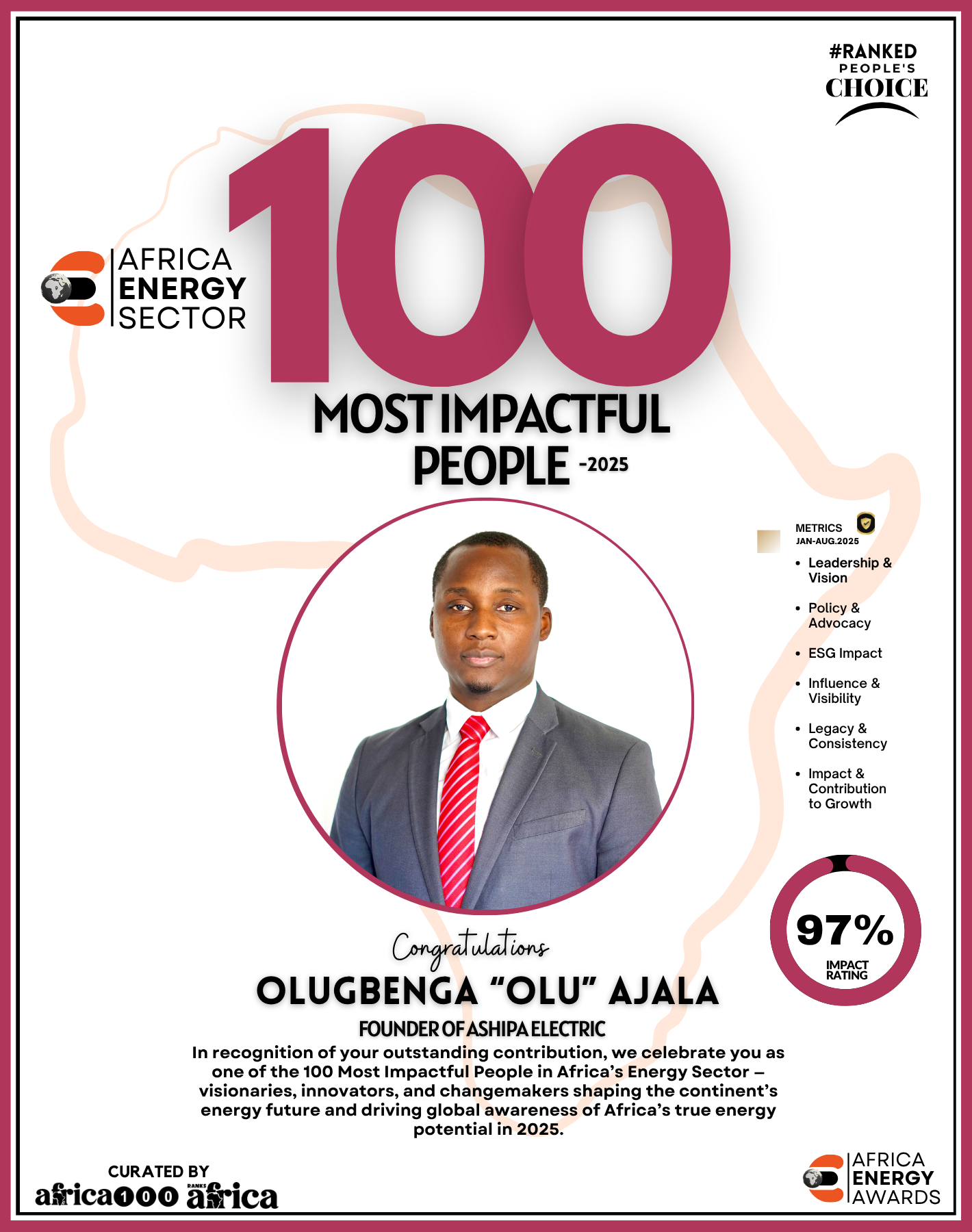 As Ranks Africa unveils this inaugural edition of The Energy 100, we celebrate not just success stories but impact stories — stories of people building Africa’s energy future with integrity, innovation, and purpose.