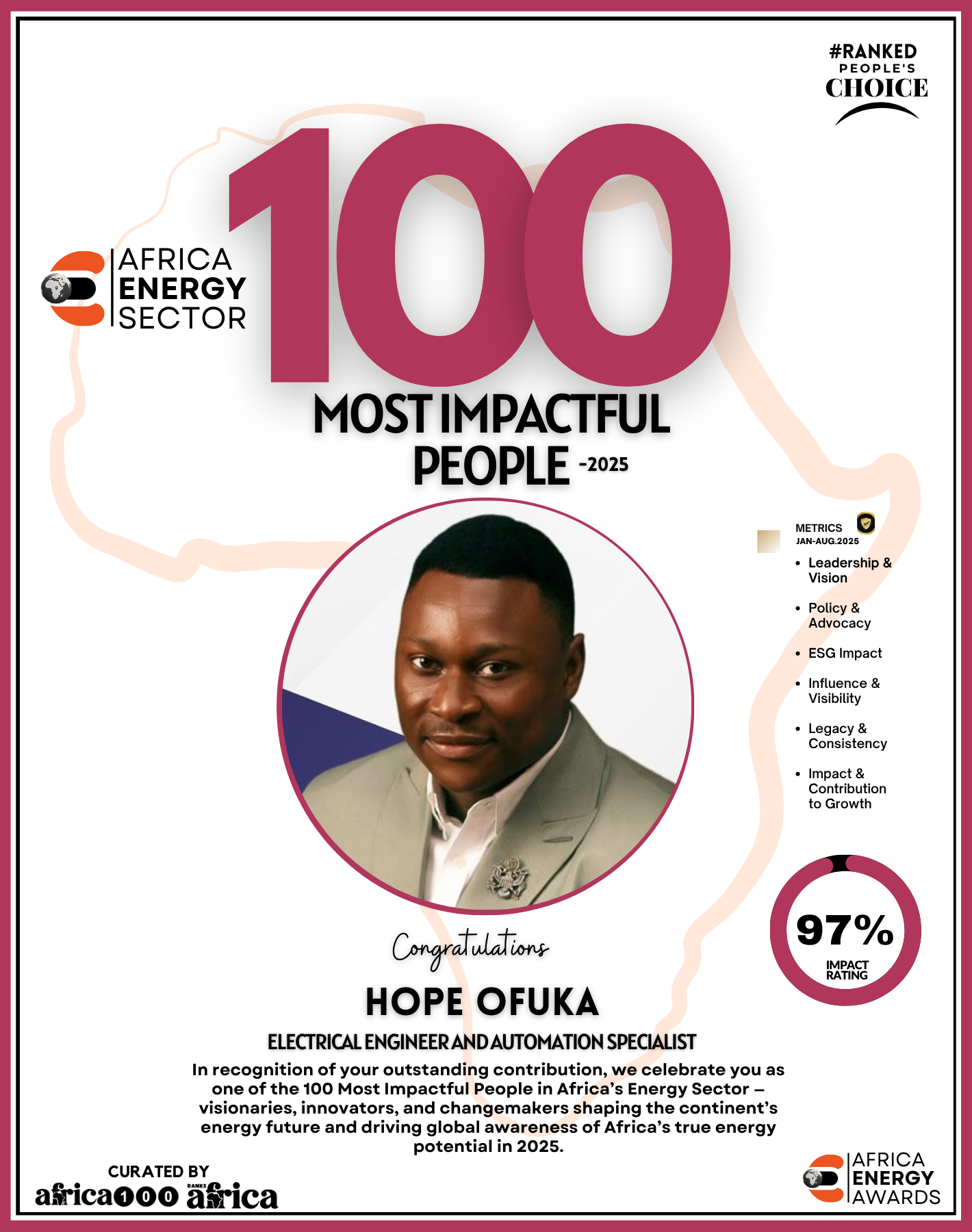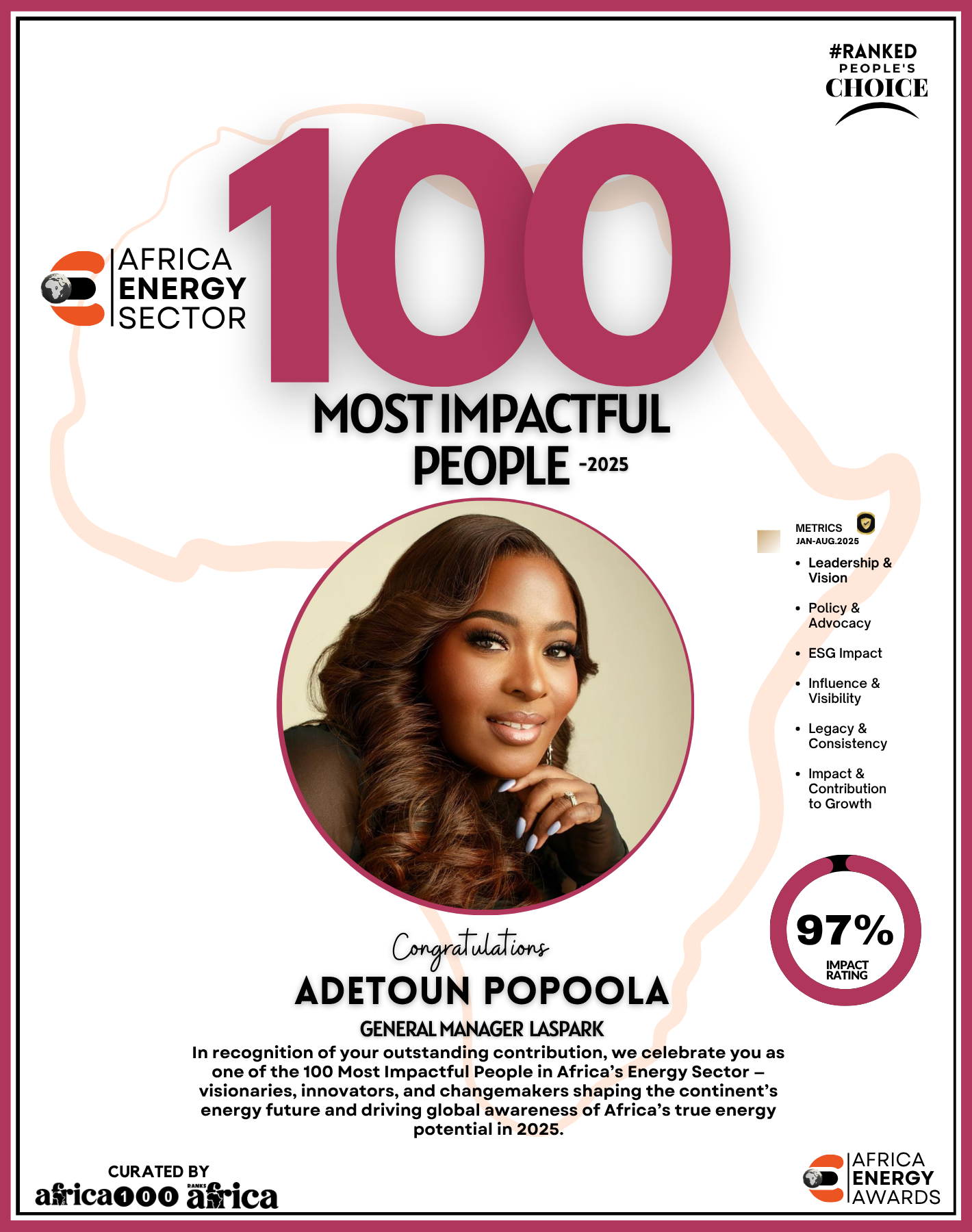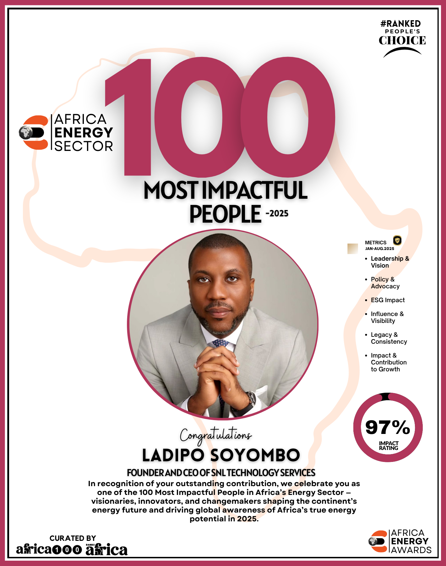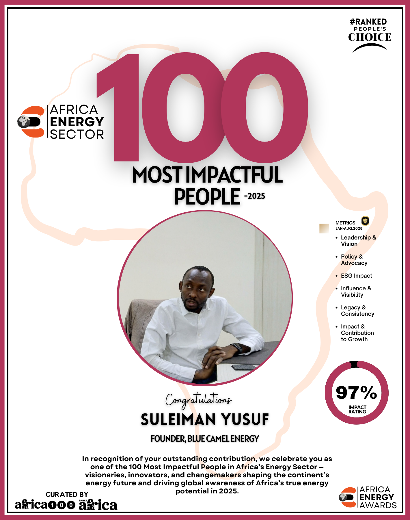 As Ranks Africa unveils this inaugural edition of The Energy 100, we celebrate not just success stories but impact stories — stories of people building Africa’s energy future with integrity, innovation, and purpose.