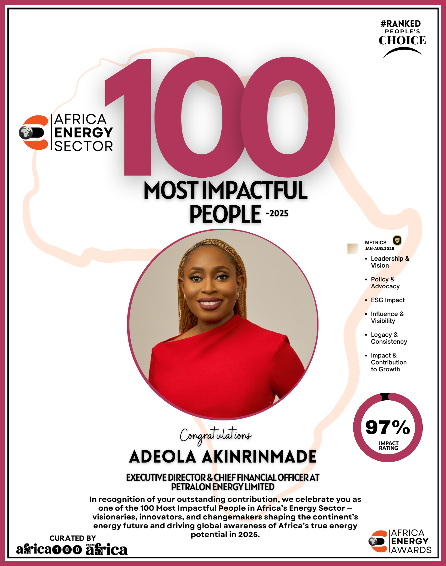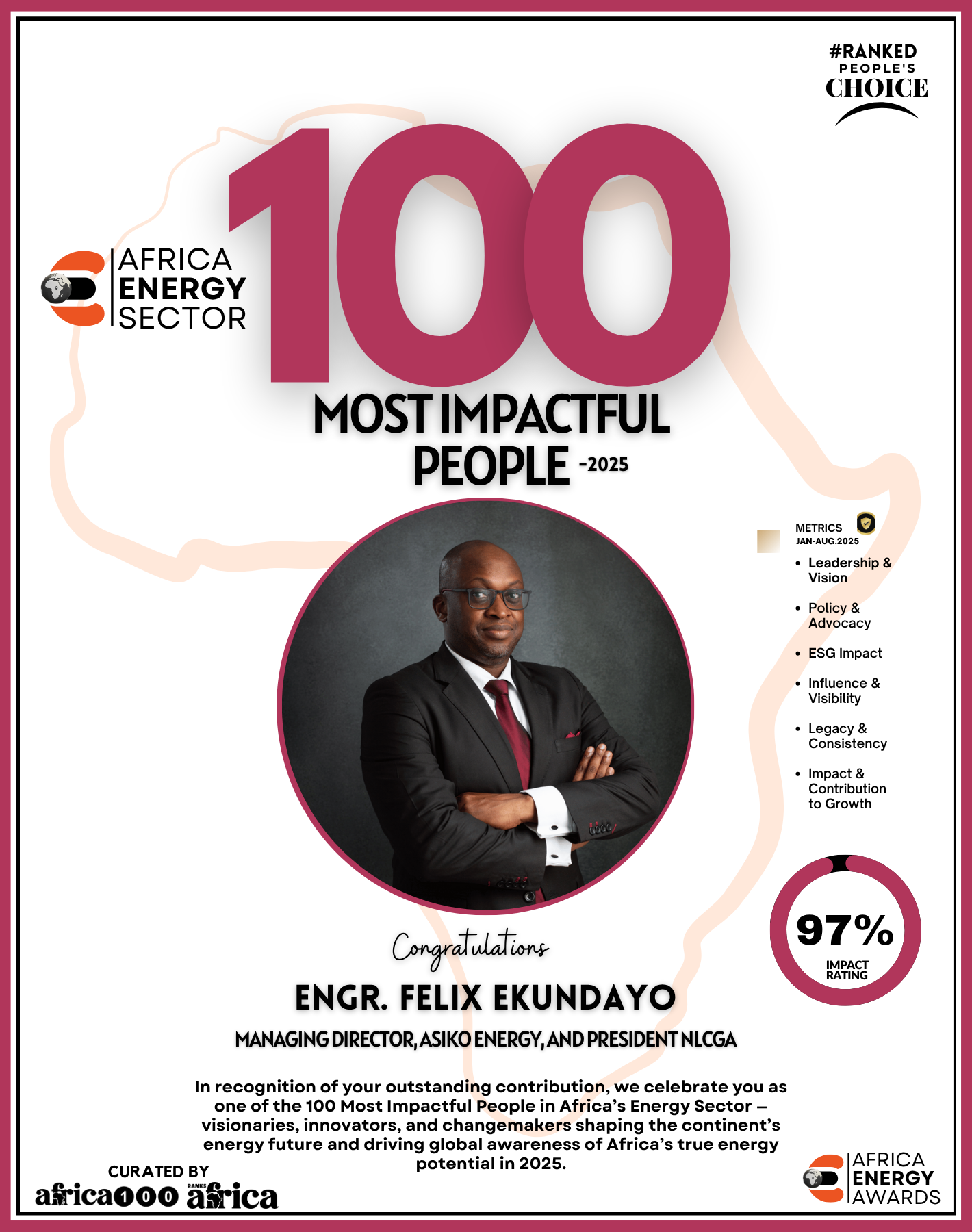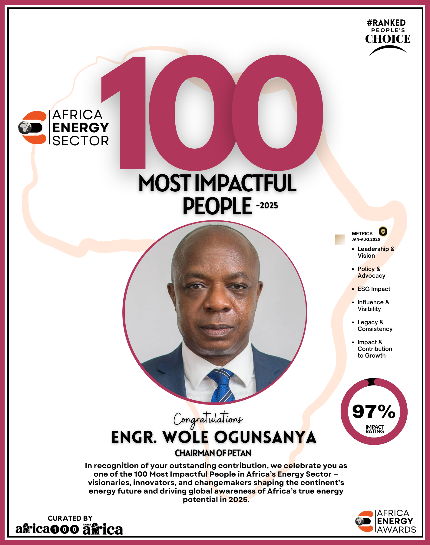 Together, They Power the Continent, from oil rigs to solar farms, boardrooms to policy tables — The Energy 100 is more than a list. It’s a reflection of Africa’s unstoppable momentum. These individuals remind us that energy is not just about power — it’s about possibility.