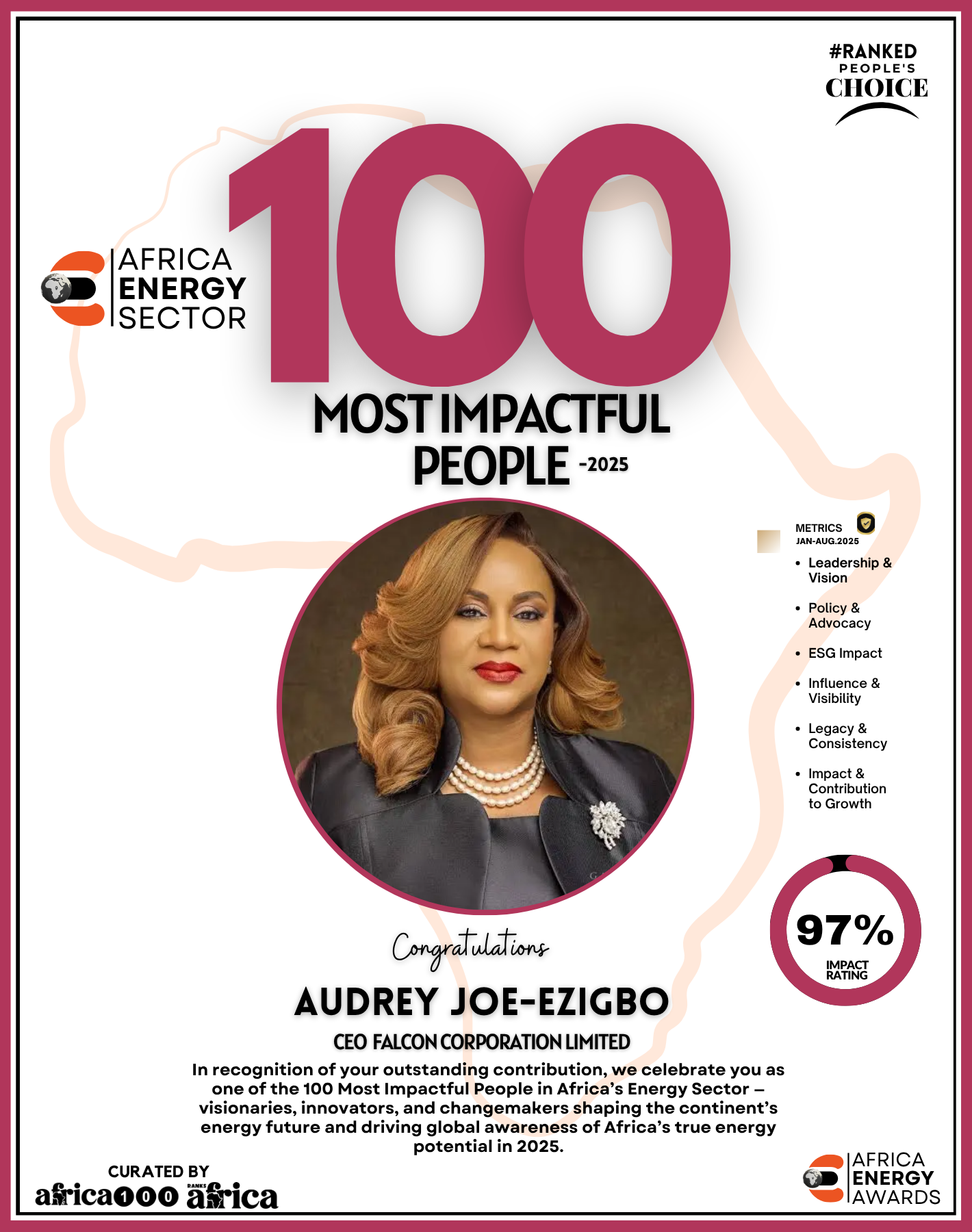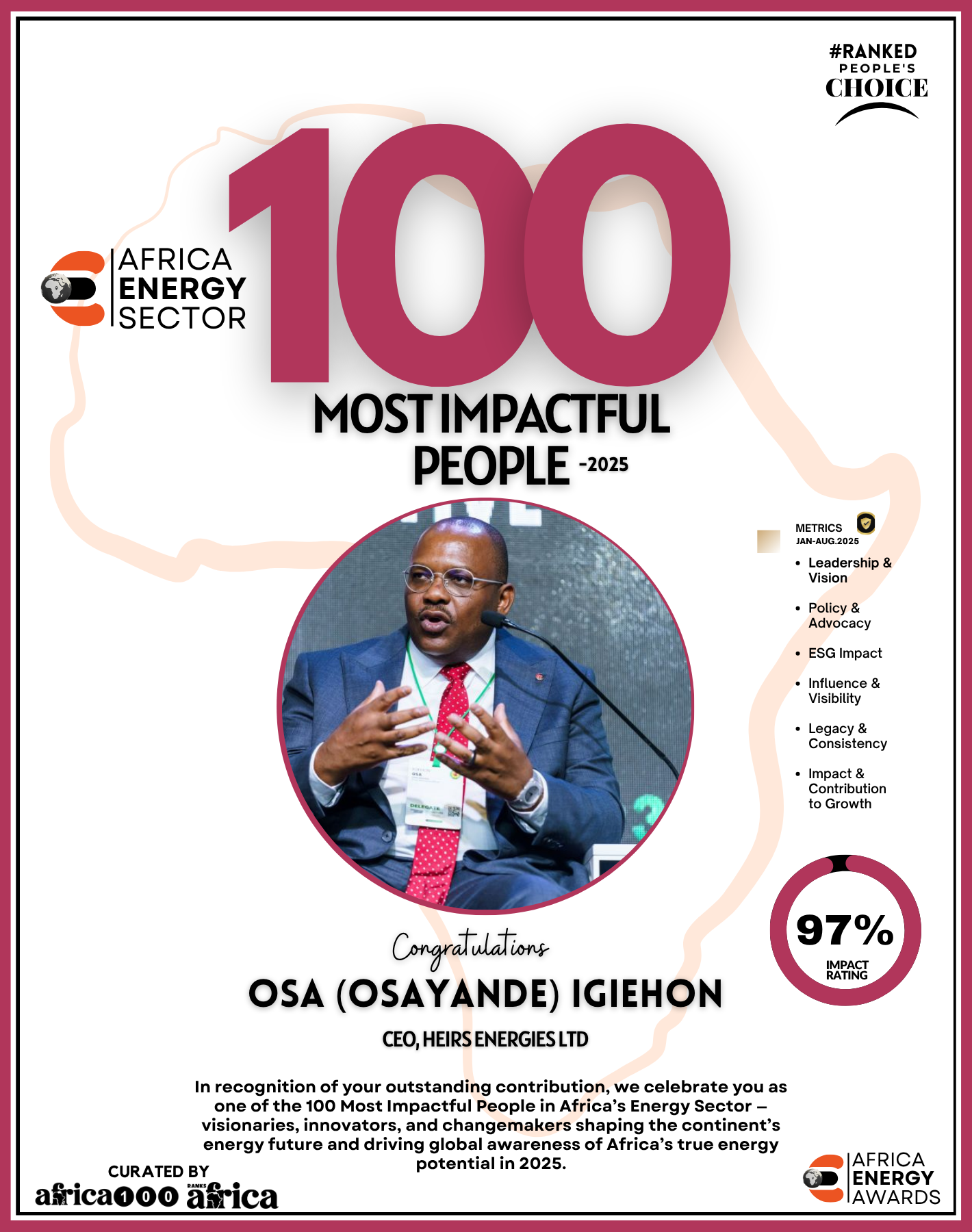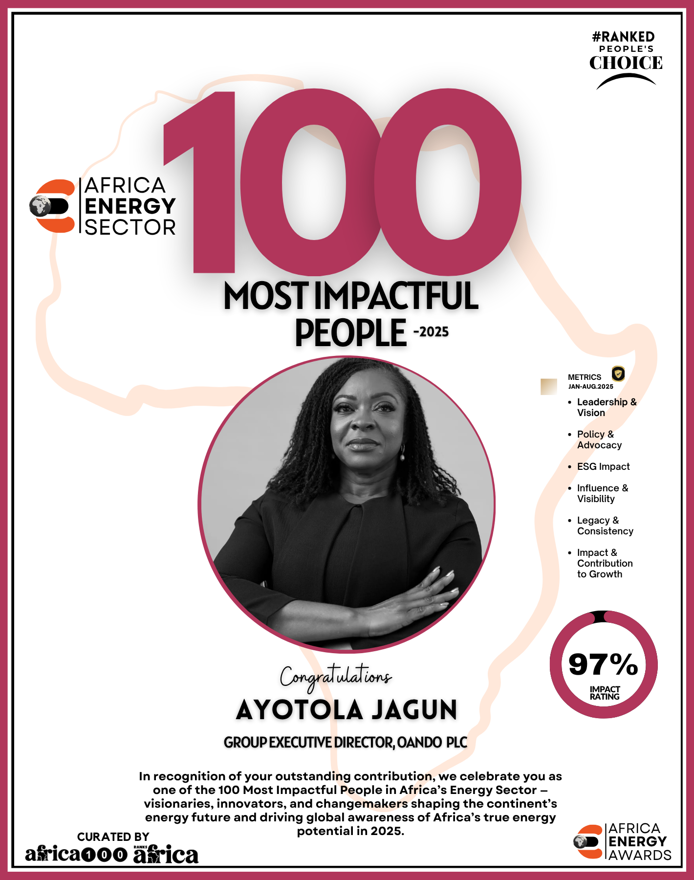 Together, They Power the Continent, from oil rigs to solar farms, boardrooms to policy tables — The Energy 100 is more than a list. It’s a reflection of Africa’s unstoppable momentum. These individuals remind us that energy is not just about power — it’s about possibility.